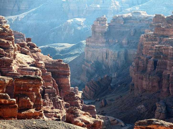 – دره شارین: که به «گرند کانیون قزاقستان» مشهور است و چشماندازهای شگفتانگیزی از درهها و سنگهای رنگارنگ دارد.